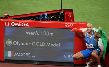 impossibile. Essere qui è qualcosa di magnifico, neanche nei sogni lo avevo immaginato così bello. E’ qualcosa di speciale, particolare, sono la persona più emozionata e contenta di questo mondo, è fantastico”. Lo ha dichiarato Marcell Jacobs dopo aver ricevuto la medaglia d’oro olimpica sul podio dello stadio nazionale di Tokyo. “Ho guardato la medaglia, il percorso fatto, i sacrifici, le difficoltà incontrate che però mi hanno aiutato – ha aggiunto l’azzurro ai microfoni della Rai – Questa medaglia pesa tantissimo, è bellissima. Il futuro? Adesso sarà il mio allenatore a dover essere bravo a capire e gestire i miei prossimi impegni, io mi godo questa medaglia”. Jacobs conferma anche il matrimonio a breve con la sua compagna:”Sicuramente l’anno prossimo coroneremo anche il sogno di sposarci”.