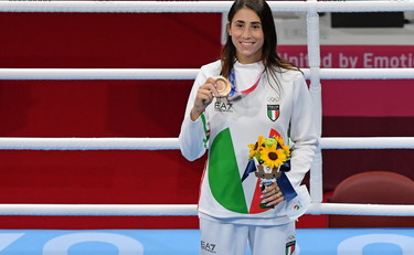 TOKYO (GIAPPONE) (ITALPRESS) – “Sognavo questo momento da quando ho iniziato”. Lo ha detto Irma Testa dopo essere stata premiata con il bronzo alle Olimpiadi di Tokyo nella categoria 54-57 kg. L’azzurra si era assicurata la medaglia sabato scorso, perdendo la semifinale contro la filippina Neshty Petecio, a sua volta battuta nella finale per l’oro contro la giapponese Irie. “E’ una sensazione indescrivibile, avere in mano questa medaglia è uno dei momenti più belli della mia vita. Penso alla mia scalata, a tutti i sacrifici, da dove sono partita e dove sono oggi, è un percorso che lascia segni indelebili dentro” ha detto la pugile ai microfoni Rai. “Rappresenta un segno di riscatto, ce l’ho fatta, ho preso una medaglia olimpica, che è il sogno di ogni atleta, la conferma che tutto quello che ho fatto è servito a qualcosa. Dedica? Alla mia famiglia che ha fatto tanti sacrifici, al mio maestro con cui ho iniziato. E’ un bronzo importantissimo, significa che anche le donne possono fare pugilato. Noi non avevamo dubbi, molti sì”.