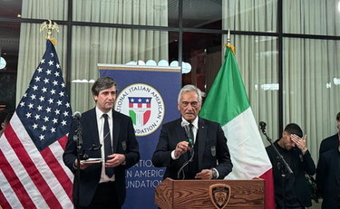 NEW YORK (STATI UNITI) (ITALPRESS) – Dalla Florida a New York per la seconda tappa della tournèe americana della Nazionale e, come previsto, l’accoglienza è stata travolgente. La comunità italiana e italoamericana della Grande Mela aspettava gli azzurri da vent’anni e a organizzare il patriottico festeggiamento per la squadra allenata da Luciano Spalletti, ci ha pensato la National Italian American Foundation (NIAF) del presidente Robert Allegrini, che ha organizzato un ricevimento allo Spring Place Club di Manhattan. Lì, ad attendere gli azzurri, una folla incontenibile di italiani residenti a New York e di italoamericani tifosissimi. Dopo gli inni nazionali cantati ad alta voce dalla sala gremita, Allegrini ha dato la parola agli sponsor della serata, l’imprenditore Giovanni Colavita, Ceo dell’azienda di olio d’oliva, e Pierpaolo Monti, Country Manager Usa Intesa San Paolo. Quindi ecco il Console Generale Fabrizio Di Michele, che parlando anche in inglese per esser sicuro che tutti capissero, ha detto: “Siamo qui per supportarvi e abbracciarvi a nome di tutta la comunità. E mentre questa estate agli Europei potete anche non rivincere il titolo, quello su cui non possiamo fare compromessi è il fatto di avervi qui tra due anni per il Mondiale”. Quindi la parola è passata al presidente della Figc, Gabriele Gravina, che, emozionato ha ribadito quanti milioni di italiani all’estero siano orgogliosi “della nostra Nazionale, della maglia azzurra e di quello che rappresentano gli azzurri”. Gravina ha ringraziato i giocatori per aver interpretato al meglio la loro trasferta negli Usa regalando subito ai tifosi la vittoria a Miami sul Venezuela. “Grazie per i loro sacrifici che sono ampiamente ricompensati da questa carica di entusiasmo che porteremo nel cuore”, ha detto Gravina.