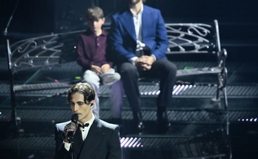 SANREMO (ITALPRESS) – Damiano David – guanto in velo ricamato, abito scuro, camicia con pistagna chiusa da un alamaro nero – apre di fatto la seconda serata del 75° Festival di Sanremo con una interpretazione da brividi di “Felicità” di Lucio Dalla. Un omaggio al cantautore bolognese, autore di pagine uniche della musica italiana, in cui brilla anche l’orchestra di Sanremo. La coreografia ha visto, dietro Damiano David, una panchina su cui era seduto Alessandro Borghi con il piccolo Vittorio. “Abbiamo pensato che Vittorio fosse la persona giusta per rappresentare questo passaggio alle future generazioni”, ha detto Borghi abbracciando il bambino visibilmente emozionato.