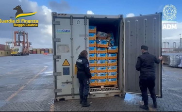 REGGIO CALABRIA (ITALPRESS) – La Guardia di finanza, in collaborazione con il personale dell’Agenzia delle Dogane e dei Monopoli, ha sequestrato presso il porto di Gioia Tauro un ingente carico di cocaina purissima del peso totale di 788 chilogrammi. In particolare, i militari e i funzionari dell’Ufficio delle dogane di Gioia Tauro, sulla scorta delle risultanze informative emerse nell’ambito della meticolosa attività di analisi dei rischi e del capillare controllo del sedime portuale, hanno selezionato e sottoposto ad accurate ispezioni tre container sospetti, provenienti dal Sud America e diretti in alcuni porti dell’Italia e della Spagna. I container bloccati sono stati dapprima sottoposti ad una approfondita scansione radiogena, utilizzando le sofisticate apparecchiature scanner in dotazione all’Agenzia delle Dogane e dei Monopoli, e successivamente a un’accurata ispezione con il prezioso ausilio delle unità cinofile in forza al Gruppo della Guardia di Finanza di Gioia Tauro. Al termine dei controlli è stato scoperto che alcuni panetti di cocaina erano ingegnosamente nascosti dentro centinaia di sacchi di pellet, mentre altri erano stati accuratamente occultati all’interno di un’intercapedine ricavata nel vano motore del container refrigerato che trasportava pesce surgelato.