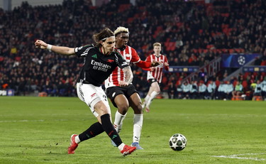 L'Arsenal ne fa sette in casa Psv, in gol anche Calafiori