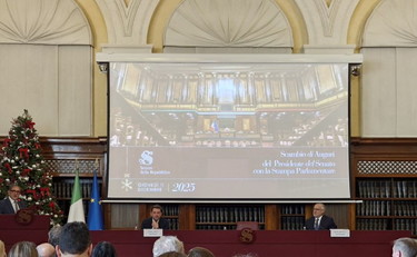 ROMA (ITALPRESS) – Dai rapporti tra Stati Uniti ed Europa alle riforme, in primis la legge elettorale ma anche il referendum sulla giustizia e una nuova proposta per ridurre il sovraffollamento delle carceri: sono i temi toccati dal presidente del Senato, Ignazio La Russa, alla cerimonia dello Scaldino per il tradizionale scambio di auguri con la stampa parlamentare. “I rapporti tra UE e Usa devono essere facilitati. C’è bisogno di ponti, di tentativi di trovare intese. Credo che il governo e l’Italia, più di altre nazioni, possano svolgere questo ruolo di attenuazione dei contrasti che potrebbero costituire un danno irreversibile per l’Europa e l’Italia stessa”: una possibile rottura tra le due sponde atlantiche “sarebbe dannosissima”, ribadisce La Russa, secondo cui “la priorità di Meloni è l’interesse dell’Italia e nell’interesse dell’Italia c’è il rafforzamento dell’Unione Europea e il mantenimento dei rapporti il più possibile stretti con gli Stati Uniti: questa non è un’ipotesi, è una certezza”. Eppure, ricorda, “la mia parte politica ha sempre affermato che l’Europa debba crescere, pensare meno a cosa che i singoli Stati possono fare da sè e più a temi come politica industriale”, ma sulla difesa “questa critica all’Europa l’ha sempre fatta, di essere troppo supina. Niente si fa gratis: se io mi accollo la tua difesa, è evidente che poi ho un’influenza anche sulla tua politica”, sottolinea La Russa. Sulle posizioni dei partiti di maggioranza sul conflitto in Ucraina, sollecitato dai cronisti che gli chiedevano di commentare le parole del vicepremier Matteo Salvini, La Russa precisa: “Meloni ha risposto che si può dare i soldi all’Ucraina senza toglierli alla sanità. Risolto il problema Salvini”. Tra lui e Meloni, comunque, “ho sempre visto un rapporto molto forte: anche quando le dichiarazioni pubbliche appaiono differenti, sappiate che poi il rapporto personale consente di trovare soluzioni”, ribadisce il presidente del Senato. Il referendum sulla giustizia “non avrà conseguenze drastiche”, sottolinea. Il paragone con quello che successe a Renzi “non c’è. Renzi è un caso a parte perchè decise liberamente di legare la sua sorte al referendum, convinto di vincere. Esattamente l’opposto di quello che fa il governo attuale”.