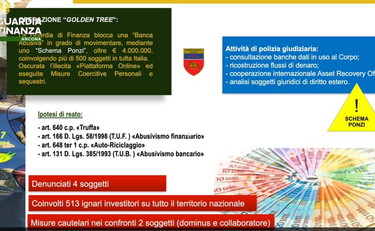 ANCONA (ITALPRESS) – I militari della guardia di finanza del Comando Provinciale di Ancona hanno scoperto un istituto bancario parallelo basato su uno schema Ponzi, capace di movimentare oltre 4 milioni e di coinvolgere più di 500 persone sull’intero territorio nazionale. Nell’ambito dell’operazione, denominata “Golden Tree”, sono state eseguite misure cautelari personali, sequestri di conti correnti e l’oscuramento della piattaforma online utilizzata per le attività illecite. Secondo quanto ricostruito, il sodalizio criminale avrebbe dato vita a un istituto bancario parallelo e privo di autorizzazioni, con ramificazioni anche in Polonia e Bulgaria, in grado di offrire servizi tipici del settore finanziario: apertura di conti correnti esteri, concessione di prestiti e proposte di investimento. L’organizzazione operava dietro la facciata di una presunta “community” finalizzata al benessere dei propri affiliati. In realtà, dietro tale struttura si celava un sistema fraudolento che proponeva investimenti ad alto rendimento, presentati come particolarmente vantaggiosi e remunerati tramite la causale “cashback”, nel tentativo di eludere i controlli delle Fiamme Gialle. Le indagini hanno fatto emergere un vero e proprio schema Ponzi, diffuso in numerose province italiane, tra cui Ancona, Roma, Milano, Palermo, Napoli, Torino e Bari. Il sistema si autoalimentava grazie al passaparola e ai social network, trasformando gli stessi investitori in promotori, incentivati con compensi proporzionati al numero di nuovi clienti reclutati e alle somme versate. A rendere credibile l’operazione contribuivano anche strumenti apparentemente professionali, come una carta di debito fisica personalizzata e un’applicazione digitale che simulava un servizio di home banking. Il meccanismo, tuttavia, si sarebbe arrestato quando le richieste di rimborso hanno superato i nuovi versamenti: a quel punto, i promotori non avrebbero più restituito nè interessi nè capitale. Al termine dell’operazione, quattro persone sono state deferite all’Autorità giudiziaria per i reati di abusivismo finanziario, attività bancaria abusiva, truffa e autoriciclaggio.