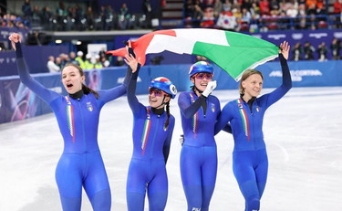 MILANO (ITALPRESS) – La 14a medaglia nella carriera olimpica di Arianna Fontana, che le consente di superare Edoardo Mangiarotti e diventare la miglior olimpionica azzurra di sempre, arriva davanti alla premier Giorgia Meloni dalla staffetta femminile 3000 metri dello short track. Le azzurre chiudono infatti seconde e conquistano una medaglia d’argento, la quinta a Milano-Cortina 2026, consegnando il record assoluto alla loro capitana. La staffetta è stata tutt’altro che semplice per l’Italia, a lungo quarta nei 3.000 metri di gara, salvo poi salire in seconda posizione dopo la caduta dell’Olanda con un’ottima condotta di gara. Le azzurre, che si erano anche portate in testa dopo che il Canada aveva perso terreno, hanno poi subito il rientro della Corea del Sud: oro sudcoreano col tempo di 4.04.014 e Italia d’argento (4.04.107), davanti al Canada (4.04.314). Arianna Fontana, Arianna Sighel, Elisa Confortola e Chiara Betti conquistano dunque la 26a medaglia per l’Italia nelle Olimpiadi di Milano-Cortina 2026, in una serata da ricordare.