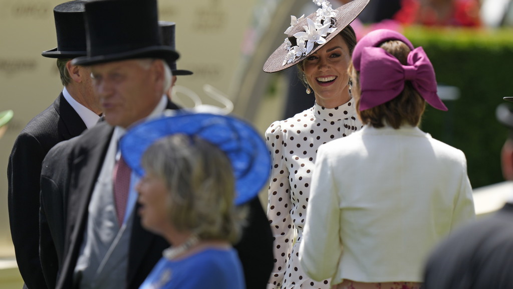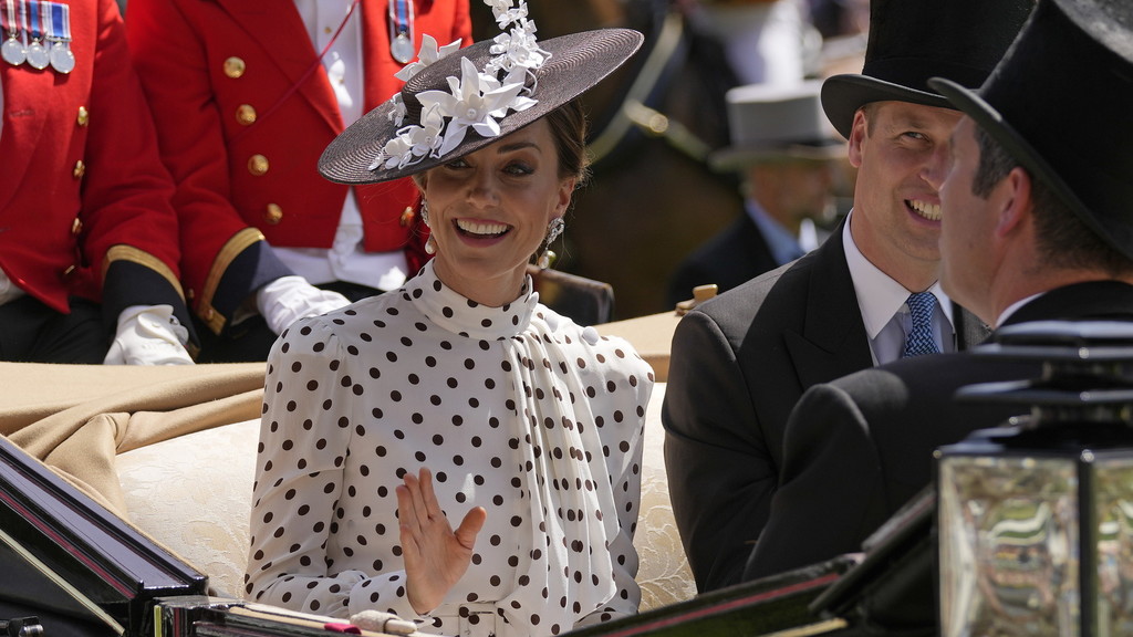 Kate Middleton, durante il quarto giorno di Royal Ascot, rende omaggio a Lady Diana con un abito bianco a pois neri pressoché identico a quello di Victor Edelstein indossato dalla principessa del Galles nel 1988 al medesimo evento ippico. Il vestito non poteva che essere firmato Alessandra Rich.