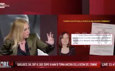 A darle l’assist il padrone di casa: “Chiara Poggi è finita di nuovo sulla scena. È finita di nuovo nel mirino di chi mette in discussione quello che ha fatto, le sue frequentazioni, le sue amicizie, il suo stile di vita – esordisce il giornalista Rai – ogni tanto si leggono delle critiche assolutamente giuste, comprensibili, motivate, alle trasmissioni televisive che dedicano troppe ore a queste vicende”. Poi il centro della questione: “Oggi c'era la notizia della stampella sulla gamba di Chiara. L'autopsia rileva che c'è un livido che potrebbe essere stato causato da una scarpa e allora da una scarpa a una stampella il passo è breve, no? Perché? Perché addirittura data con un colpo di stizza, questa è una delle ipotesi”.