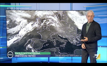 Paolo Sottocorona, meteorologo di La7, fa un quadro della situazione del tempo previsto sull’Italia e dà una panoramica generale del meteo: “Scarsità di nuvole, a dire poco, sull'Italia, ma anche molto intorno all'Italia. Questa è una zona di alta pressione, evidentemente. Le nuvole sull'Atlantico ci sono, ci sono delle perturbazioni, solo che l'alta pressione crea una specie di cupola. Quando arriva quest'aria più fredda, queste nuvole, o sono in grado di spianare questa cupola, cioè distruggerla, e allora entrano le perturbazioni, sennò devono girarci intorno. E infatti quelle perturbazioni saliranno più a nord, scavalcando l'Italia. Questo per dire che in Italia nei prossimi giorni non succede assolutamente nulla, non c'è un cambiamento del tempo”.