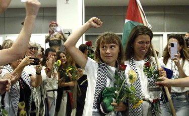 L'attivista svedese Greta Thunberg era tra le decine di deportati sbarcati lunedì pomeriggio ad Atene, in Grecia. Una folla di sostenitori si è radunata all'aeroporto internazionale Eleftherios Venizelos e ha intonato il coro "Free free Palestine!" mentre gli attivisti sbarcavano uno dopo l'altro. "È una vergogna che questa missione debba esistere! È una vergogna!", ha detto Thunberg ai giornalisti e ai manifestanti poco dopo il suo arrivo. "Potrei parlare a lungo dei maltrattamenti e degli abusi subiti durante la nostra prigionia, credetemi, ma non è questo il punto", ha aggiunto. Thunberg ha invece esortato i leader mondiali e i cittadini comuni di tutto il mondo a porre fine alla loro "complicità" con il "genocidio" perpetrato contro i palestinesi a Gaza. "Questa azione ha sfidato il nostro modo di agire estremamente violento", ha detto Thunberg. "Non possiamo distogliere lo sguardo da Gaza".