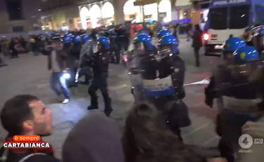 All'operatore i manifestanti hanno chiesto di spegnere la telecamera per non essere ripresi in volto. Dopo qualche attimo di tensione, giornalista di E' Sempre Cartabianca e operatore si sono allontanati tra la folla e si sono rifugiati nei vicoli del centro di Bologna.
