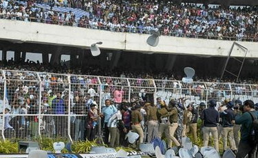 Un video dell'agenzia stampa Ani mostra i tifosi che, per protesta, strappano i sedili in plastica dello stadio e lo lanciano sul campo e sulla pista di atletica insieme a bottiglie e altri oggetti mentre diverse persone scavalcano la recinzione che circonda il terreno da gioco.