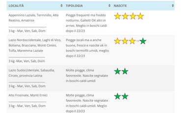 Sul sito specializzato funghimagazine si legge che "in molte regioni d’Italia, soprattutto al Centro e Sud, oltre che in Veneto ed Emilia Romagna-Liguria sono già partire le nascite dei ricercati Galletti, Cantharellus, abbondano ovunque le Russule e nei prati si trovano spesso le Mazze di Tamburo, in arrivo subito dopo ogni pioggia".