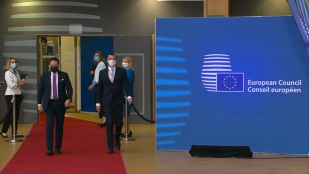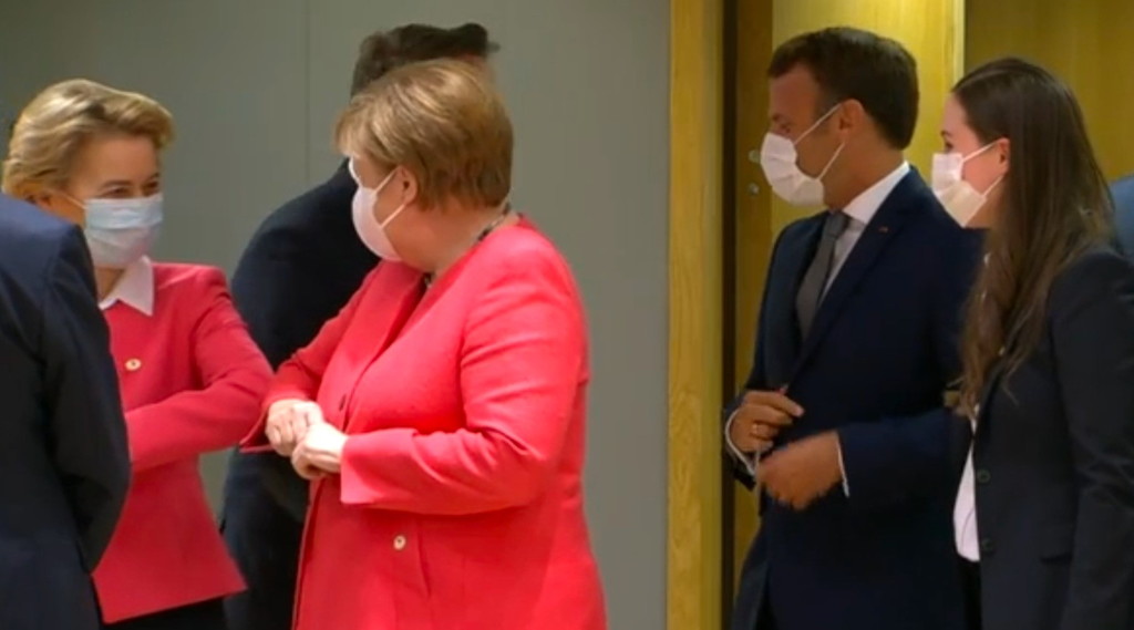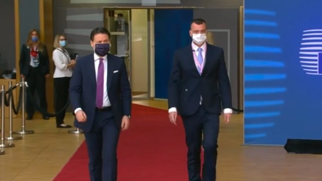 Conte nervoso cerca appoggio da Casalino. Anche la Merkel è preoccupata e allora dà di gomito insieme al presidente del consiglio Ue Charles Michel.