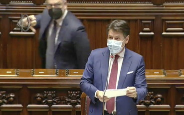 Giuseppe Conte sta parlando in Aula di Mes e delle solite promesse non mantenute. E proprio in quel momento gli passa alle spalle Federico Mollicone di Fratelli d'Italia che non può fare a meno di fargli il pollice verso. La beffa è servita...