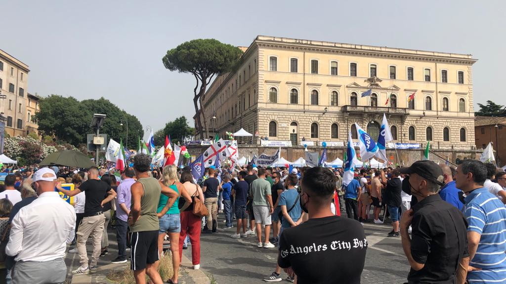 Al via la manifestazione della Lega in piazza Bocca della Verità a Roma. "L'Italia non è una colonia, nè un campo profughi", dice il leader della Lega Matteo Salvini aprendo l'iniziativa. "È una piazza bella, accaldata e appassionata. Questa è l'Italia che riparte".