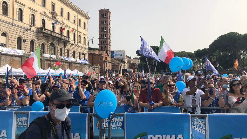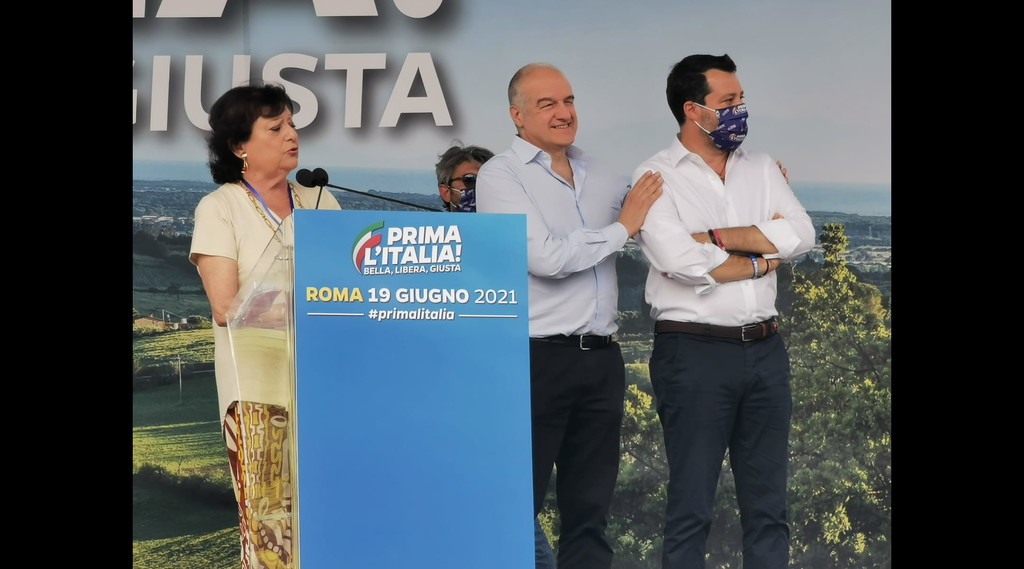 Dopo aver fatto intervenire sul palco un rappresentante di imprenditori flagellati dalla crisi e dalle major del web,il leader della Lega introduce sul palco Enrico Michetti, candidato sindaco del centrodestra a Roma, e Simonetta Matone, candidata prosindaco. Quest' ultima pone l'accento sulla vivibilità della Capitale e soprattutto la condizioni della nuova generazione. "Il disagio giovanile - osserva - è una bomba a orologeria su cui siamo seduti". E aggiunge "il mondo di tante famiglie nel disagio, il mondo delle case famiglie e dei papà separati è un mondo cui voglio essere accanto" . E poi vira sul degrado: "Roma non può essere quella dei cassonetti straripanti o degli autobus in cui si sta stipati". Enrico Michetti pone l'accento sul "ridare dignità alla città".