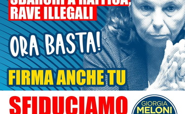Sul sito dove si può sottoscrivere la petizione si legge invece questo messaggio: “Aumento dell'immigrazione clandestina, rave party illegali e scarso controllo del territorio. E' arrivato il momento di sostituire il Ministro degli Interni. FIRMA ANCHE TU! I sottoscrittori chiedono ai parlamentari di sostenere e votare la mozione di sfiducia preparata da Fratelli d'Italia nei confronti del ministro Lamorgese”. La lotta di FdI contro l'ex prefetto di Milano entra nel vivo.