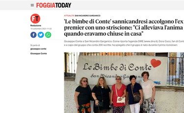 Olivia Paladino, fidanzata storica di Giuseppe Conte, finalmente può tirare un sospiro di sollievo. In Puglia sono dopo tanto tempo venute allo scoperto le celebri "BImbe di Conte", le tifosissime dell'ex premier che si sono scattate una foto ricordo a San Nicandro Garganico.