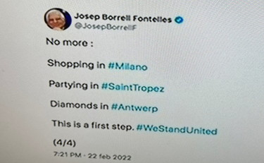 Ed è proprio sul caso sanzione che esplode la polemica italiana contro l'Unione Europea. Josep Borrell, alto rappresentante per gli affari esteri e la politica di sicurezza nell'Ue twitta (e poi cancella) una frase tutt’altro che politically correc, per cui, con le sanzioni, “non ci sarà più lo shopping dei russi a Milano, le feste a St Tropez e gli acquisti di diamanti ad Anversa”.