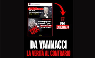 Da Vannacci "la verità al contrario", si legge in calce al riproposto post del generale, (che è stato presto rimosso dall'eurodeputato della Lega). "Non abbiamo mai votato a favore dello stop delle auto a benzina. Vannacci mente sapendo di mentire. Ignoranza o malafede?", scrivono sul profilo X di Forza Italia. E ancora: "Ma con Forza Italia casca male: noi, a differenza sua, siamo sempre stati coerenti nella difesa delle imprese. Il fatto che abbia eliminato il post ci dà ragione". A confermare il fatto che Forza Italia abbia "sempre votato contro lo stop per le auto benzina e diesel", FI ha pubblicato anche i documenti che lo attestano.