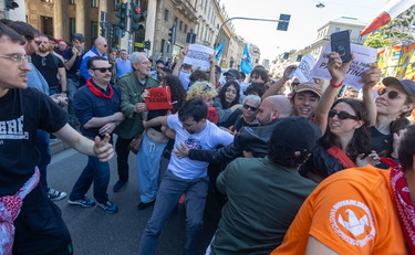 Tra l'altro dagli attivisti Pro Pal. Poi è partito l'attacco al Partito democratico di Elly Schlein, che parteciperà al corteo. È partito il coro: "Pd siete fascisti travestiti”. Un furgone del Pd è stato invece bloccato dagli attivisti del centro sociale del Cantiere. Hanno contestato lo spezzone dem bloccando la strada e impedendo al furgone di posizionarsi all'interno del corteo del 25 Aprile a Milano. "Il Partito Democratico è la vergogna del 25 aprile, il 25 aprile non è di chi fa le zone rosse, di chi ci porta alla guerra", hanno urlato i ragazzi. Solo con l'intervento del servizio d'ordine del sindacato lo spezzone del Pd è riuscito a proseguire.
