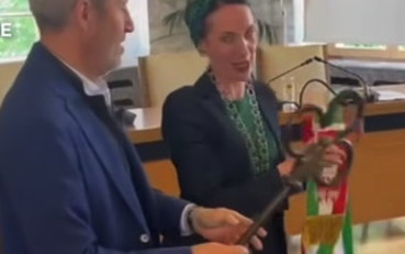 Scintille nel passaggio di consegne tra primi cittadini a Merano, dove si è tenuta la cerimonia di proclamazione del nuovo Sindaco. Ebbene, parliamo di Katharina Zeller, esponente della Svp che succede a Dario Dal Medico, tra l'altro figlia della senatrice Julia Unterberger anche lei del Südtiroler Volkspartei. Al momento di ricevere fascia tricolore e chiavi della città, Zeller è apparsa infastidita dall'insegna bianca, rossa e verde che ha subito riposto rifiutandosi di indossarla di nuovo. Dal Medico non ha nascosto il suo disappunto. Ecco il video dell'episodio.