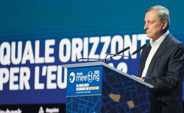 È un lungo applauso quello che accoglie l'arrivo di Mario Draghi sul palco del Meeting di Rimini, dal quale l'ex presidente del Consiglio ed ex presidente della Banca centrale europea ha lanciato un monito all'Unione europea «marginale» che deve rispondere alla «sveglia brutale» di Trump stringendosi «tutti insieme» per trasformarsi «da spettatore o al più comprimario in attore protagonista. Per anni l'Unione Europea ha creduto che la dimensione economica, con 450 milioni di consumatori, portasse con sé potere geopolitico e nelle relazioni commerciali internazionali», è stato l'esordio di Draghi nel suo intervento intitolato "Quale orizzonte per l'Europa?". «Quest'anno sarà ricordato come l'anno in cui questa illusione è evaporata. Abbiamo dovuto rassegnarci ai dazi imposti dal nostro più grande partner commerciale e alleato di antica data, gli Stati Uniti», ha affermato.