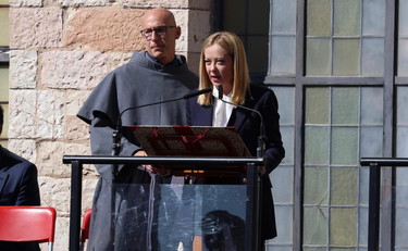 "L'uso della forza prevale in troppe occasioni sostituendosi alla forza del diritto. Questo scenario non può e non deve spingerci alla resa, ad arrenderci all'idea che non ci sia un'altra opzione oltre alla guerra. Solo che la pace, ci ricorda San Francesco, non si materializza quando la si invoca, ma quando la si costruisce con impegno, pazienza, coraggio". Lo ha detto la presidente del Consiglio, Giorgia Meloni, intervenendo ad Assisi in occasione delle celebrazioni per San Francesco, patrono d'Italia. "Ci si arriva mettendo un mattone dopo l'altro, con la forza della responsabilità e l'efficacia della ragionevolezza. È quanto ci auguriamo stia accadendo in queste ore in Palestina", ha aggiunto.