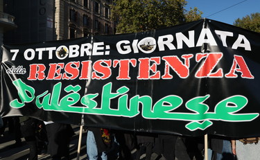 Un lungo striscione nero con scritte in bianco, rosso, verde, per ricordare i colori della bandiera palestinese. Una sorta di cartello di benvenuto della sfilata ProPal che ieri ha attraversato Roma. Lo vedono tutti, passanti, giornalisti, manifestanti, finisce immortalato in migliaia di telefonini, è subito dietro la testa del corteo. Quasi come una firma: «7 ottobre giornata della Resistenza palestinese», nessun giro di parole, il concetto è chiaro. D’altra parte lo confermano gli organizzatori; lo stupore è fuori luogo: «I nostri cortei appoggiano la legittima resistenza armata del popolo palestinese».