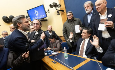 L'evento è in programma per le 11.30, ma intorno alle 10.45 una quarantina di parlamentari di Pd, M5S e Avs lasciano l'aula e si dirigono verso la sala stampa, occupando tutti i posti a sedere. "Non ci alzeremo da qui - è la promessa - I fascisti non possono entrare nelle istituzioni democratiche perché la nostra Costituzione è antifascista". Diversi deputati occupano il tavolo dei relatori, ma tra loro si inserisce anche lo stesso Furgiuele, che prende posto al centro, accanto al dem Matteo Orfini. "Fatemi fare la conferenza stampa", dice ai colleghi parlamentari, che sventolano una copia della Costituzione e intonano 'Bella ciao'. "Il documento che avete in mano prevede anche la presentazione di proposte di legge popolari, questo vogliamo fare", prova a giocarsela il leghista. "I tuoi relatori si autodefiniscono fascisti", replica il dem Arturo Scotto, che - Costituzione alla mano - aggiunge: "E' vietata la riorganizzazione sotto qualsiasi forma del partito fascista'". A Gianni Cuperlo è affidato quello che sembra un 'ripasso' di storia: "Siamo qui in modo assolutamente pacifico ma con una volontà precisa, quella di far rispettare le regole che non sono le regole di una parte, ma della nostra Costituzione", esordisce, ricordando poi le vittime e le responsabilità del regime fascista. "Chi nega quelle responsabilità dentro il Parlamento non ha il diritto di entrare", dice.
