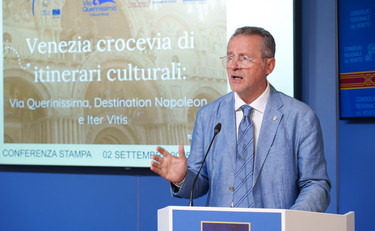 (Arv) Venezia 2 set. 2025 - “L'appuntamento di oggi nasce dall'incontro fecondo di tre percorsi culturali: Iter Vitis, Destination Napoleon e Via Querinissima, due dei quali riconosciuti dal Consiglio d'Europa, oggi riuniti in un progetto comune che è al tempo stesso visione e responsabilità. Quando tre strade si incontrano, non si sommano soltanto, ma creano un nuovo tracciato: così avviene anche con i cammini della cultura, che generano senso, identità e futuro. L'obiettivo che ci accomuna è chiaro e urgente: dare vita a un turismo culturale ed esperienziale che restituisca autenticità e profondità al viaggio, sottraendolo alla logica del consumo rapido. Non è un caso che questo incontro avvenga a Venezia. Venezia è il simbolo stesso del viaggio, città di approdi e di partenze, di incroci e di contaminazioni, ma è anche simbolo di fragilità. L'overtourism rischia di ridurre i luoghi a scenografie svuotate, e ciò che accade qui riguarda molti altri territori. Per questo Venezia diventa paradigma: se qui sapremo costruire modelli sostenibili, potremo farlo ovunque. Il valore di queste iniziative si misura su più piani. Nel turista, che porta a casa un ricordo autentico, legato a persone, storie e sapori. Nelle attività commerciali, che hanno l'opportunità di superare la logica del souvenir senz'anima e dare voce alla creatività dei nostri artigiani. Nelle comunità locali, che non devono più subire un turismo invadente, ma tornare protagoniste della narrazione della propria terra”. Con queste parole il Presidente del Consiglio regionale del Veneto, Roberto Ciambetti, ha aperto l'evento “Venice at the Crossroad – Venezia Crocevia di itinerari culturali”, giornata di confronto, a Palazzo Ferr-Fini, tra Itinerari Culturali del Consiglio d'Europa, dedicata al ruolo simbolico e strategico di Venezia come crocevia tra Oriente e Occidente, terra e mare, scambi commerciali e cultura. “Sono grato ai relatori che oggi portano la loro esperienza: imprenditori e professionisti che hanno saputo unire lavoro, passione e cultura, trasformando l'impresa in racconto del territorio. È un segnale prezioso: dimostra che si può fare economia senza tradire l'identità dei luoghi, ma anzi esaltandola. Questo evento nasce da un'intuizione semplice ma potente: tre volumi artigianali, stampati su carte pregiate, che raccontano i nostri itinerari: “Il Baccalà Sublime” per la Via Querinissima, “Il Pollo alla Marengo” per Destination Napoleon, “La Malvasia” per Iter Vitis. Tre libri che non sono soltanto oggetti, ma simboli di un'Italia che sa trasformare il bello in racconto e il racconto in valore”, ha affermato il Presidente. “Non meno significativo è l'apporto di chi ha ideato e progettato percorsi turistici ispirati a questi itinerari, restituendo a Venezia nuove esperienze da vivere: concrete, eleganti, coerenti con lo spirito di ciascun cammino. È un dono alla città e a chi la visiterà, un contributo che arricchisce di qualità e di senso l'offerta turistica. L'intento profondo è restituire ai territori la dignità delle loro tradizioni e, nello stesso tempo, offrire agli operatori opportunità di lavoro appaganti, fondate su qualità e creatività. Penso all'esempio dell'architetto Molinari, autore del volume dedicato alla Malvasia, che oggi ha scelto di diventare oste, proponendo un locale dove si riscopre la cultura di questo vino e, con essa, la memoria delle nostre terre”, ha proseguito Ciambetti. “Vendere suggestioni, raccontare bellezza, fermare il tempo: questo è il cuore del messaggio che vogliamo trasmettere. Perché un turismo di qualità non si limita alla visita: diventa esperienza, emozione, memoria viva. Oggi, insieme, proviamo a immaginare un turismo diverso: consapevole, sostenibile, profondamente umano. Venezia e il Veneto hanno sempre insegnato al mondo che il viaggio non è solo spostamento nello spazio, ma crescita dell'anima. E mai come ora abbiamo bisogno di riscoprire questa verità”, ha concluso il Presidente.