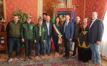 (Arv) Venezia 1 ott. 2025 - Questa mattina, a Palazzo Ferro Fini, il Presidente del Consiglio regionale del Veneto Roberto Ciambetti ha ricevuto una delegazione greca della città di Metsovo, guidata da Vasileios Katsoras - presente anche il vicesindaco di Igoumenitsa Dimitrios Palamas - unitamente ad una rappresentanza del comune di Sandrigo (VI), composta dal Sindaco Marica Rigon e da Lino Marchiori, Presidente Sezione ANA “Monte Pasubio” Vicenza e Renato Chemello Capogruppo Alpini di Sandrigo. L'incontro è da intendersi come frutto di un processo di avvicinamento e atto di amicizia dopo la campagna italiana di Grecia che si svolse a partire dall'ottobre 1940. In occasione delle celebrazioni per il 90° anniversario del Gruppo Alpini di Sandrigo e alla luce del ruolo degli Alpini quali uomini di pace, l'incontro odierno vuole porre le basi per un futuro legame, da rafforzarsi ulteriormente anche tra la stessa Regione Veneto e la città greca.