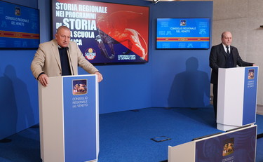 I consiglieri regionali del gruppo Szmuski - Resistere Veneto, Riccardo Szumski e Davide Lovat, con l'ex parlamentare e ministro, Roberto Castelli, e il consigliere comunale di Pontida (BG), Francesca Losi, entrambi esponenti del Partito Popolare del Nord, hanno presentato oggi a Venezia, nella sala stampa Oriana Fallaci di palazzo Ferro Fini, sede dell'assemblea legislativa veneta, l'iniziativa di legge popolare depositata presso la Corte di Cassazione il 29 ottobre scorso (sottoscrizioni aperte dal 25 gennaio), che propone l'introduzione della storia regionale nei programmi di storia della scuola pubblica. Presenti alla conferenza stampa anche il consigliere regionale Alessio Morosin, capogruppo di Liga Veneta Repubblica, e Renzo Fogliata, studioso della storia della Repubblica di Venezia.