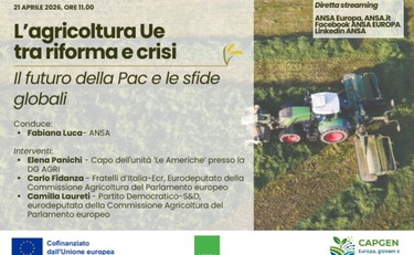 I negoziati sulla prossima Politica agricola comune (2028-2034) e l'aumento dei prezzi dei fertilizzanti, aggravato dalle tensioni geopolitiche, saranno al centro del forum di ANSA Europa in programma martedì 21 aprile. L'appuntamento, dal titolo 'L'agricoltura Ue tra riforma e crisi: il futuro della Pac e le sfide globali', è organizzato nell'ambito del progetto CapGen, cofinanziato dall'Unione europea.