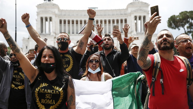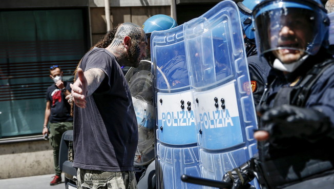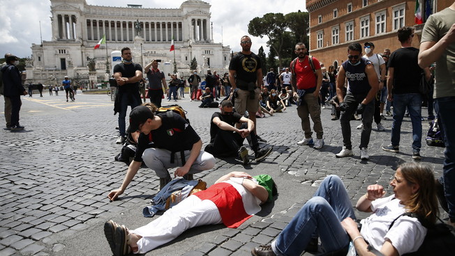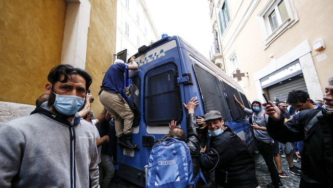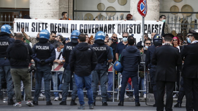 I circa 200 manifestanti, tricolori sulle bandiere e sulle mascherine, hanno cercato di dirigersi verso palazzo Chigi dove erano radunati altri manifestanti, imboccando via del Corso ma sono stati fermati dalle camionette e dagli uomini in assetto antisommossa della polizia di Stato. Impossibilitati ad andare avanti i manifestanti si sono dunque prima sdraiati a terra, alcuni hanno poi cercato di passare su via del Plebiscito e corso Vittorio Emanuele. Sempre scortati dalla Polizia, il corteo è stato lentamente diviso. Alcune decine di manifestanti continuano adesso a protestare su corso Vittorio intonando il coro «Libertà, libertà» e l’inno di Mameli. La manifestazione è stata organizzata contro il governo Conte, colpevole secondo alcuni dei partecipanti «di affamare gli italiani con la scusa del coronavirus» considerato da diversi un’invenzione.