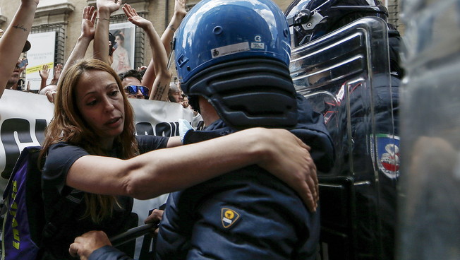 Manifestazione a Roma, tensioni con le forze dell'ordine