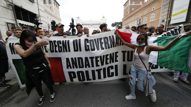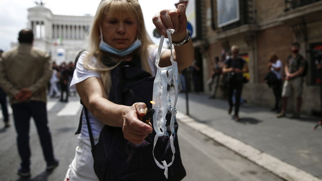 Mascherine tricolore contro Giuseppe Conte. Tensione a Roma