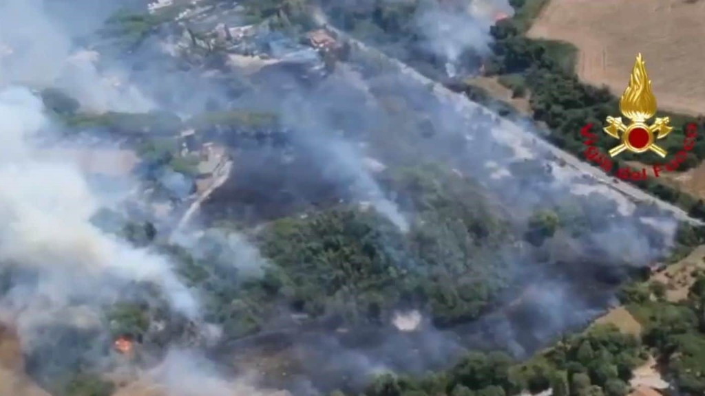 Inferno a Castel di Guido, nell'area ovest di Roma. Un maxi rogo da questo pomeriggio sta devastando circa 150 ettari di vegetazione e spaventando tutta la Capitale. Un disastro ambientale vero e proprio, a poca distanza dall'Aurelia, il GRA e il comune di Fiumicino. L'odore acre del rogo è arrivato fino al centro storico della Capitale. Dalle 14 sedici squadre del comando provinciale dei vigili del fuoco di Roma stanno intervenendo per estinguere un enorme incendio di sterpaglie. Le fiamme, sospinte dal vento, hanno rapidamente esteso il proprio raggio d'azione. Paura tra i residenti, tantissime le segnalazioni. Diverse case sono state evacuate in via Vincenzo Cuoco a scopo precauzionale. Da ormai diverse ore i vigili stanno lavorando duramente per evitare che il fuoco raggiunga le abitazioni. La sala operativa ha concentrato sul posto tutto il personale e i mezzi disponibili. Nel corso delle opere di spegnimento, è andata in fiamme una villa disabitata, alcune autovetture e una tettoia in legno di circa 300 metri. Alcune squadre dei vigili del fuoco, coordinate dal Capo Turno Provinciale si sono messe a protezione di alcuni bomboloni di GPL e di un maneggio compreso nell'area interessata dall'incendio. In azione anche un elicottero.