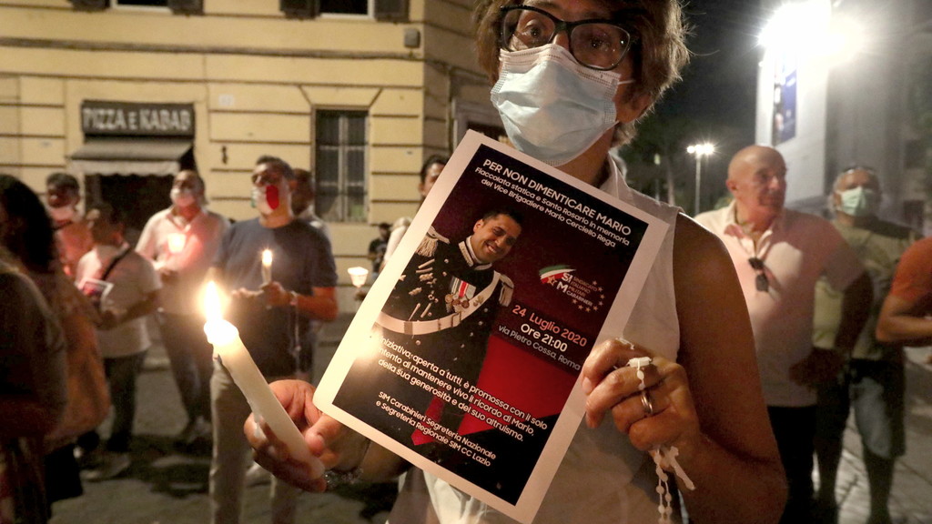 Dopo la messa nella chiesa di San Salvatore in Lauro in ricordo del carabiniere Mario Cerciello Rega, ucciso con 11 coltellate la notte del 26 luglio 2019, in tanti, tra colleghi, parenti e amici lo hanno voluto ricordare con una fiaccolata. Una commemorazione organizzata da Sim Carabinieri in via Pietro Cossa, nel punto esatto in cui il vicebrigadiere di 35 anni e il suo collega Andrea Varriale furono aggrediti dai 2 turisti. Alla fiaccolata hanno partecipato la vedova del militare. Per quell’omicidio ora sono a processo davanti alla Corte d’Assise due ragazzi americani: Finnegan Lee Elder e Christian Gabriel Natale Hjorth.