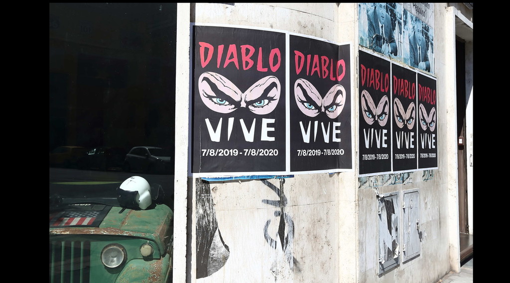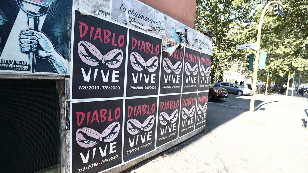 Manifesti per ricordare il capo ultras Fabrizio Piscitelli ad un anno dalla sua uccisione. "Diabolik", come lo chiamavano tutti, è stato ucciso lo scorso anno, il 7 agosto, da un killer vestito da runner mentre era seduto su una panchina del Parco degli Acquedotti. Proprio per la ricorrenza della sua morte, gli ultras della Lazio e i suoi amici hanno tappezzato tutte le zone di Roma con i manifesti raffiguranti l’immagine del fumetto di Diabolik e la scritta "Diablo Vive", accompagnata dalla data 7/872019 - 7/872020.