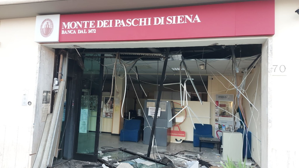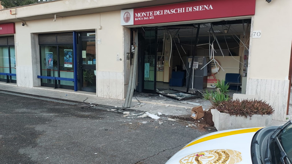 Risveglio choc a Labaro. Durante la notte sconosciuti, con il probabile ausilio di un carro attrezzi, hanno divelto l'intero distributore bancomat della filiale del Monte dei Paschi di Siena causando ingenti danni alla costruzione in via Costantiniana 72. Nella gallery le immagini dei primi rilievi delle forze dell'ordine: il palazzo è praticamente sventrato.
