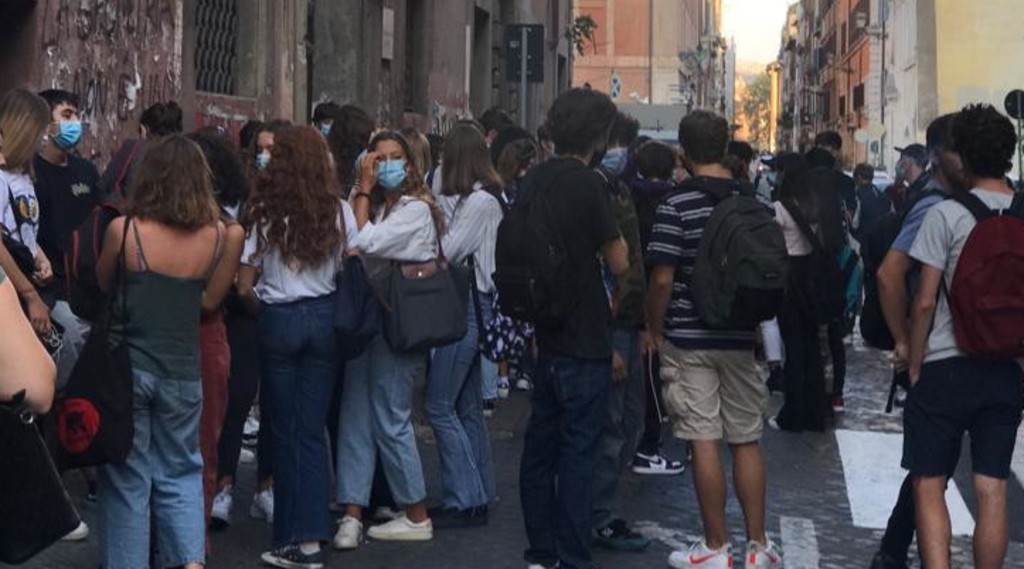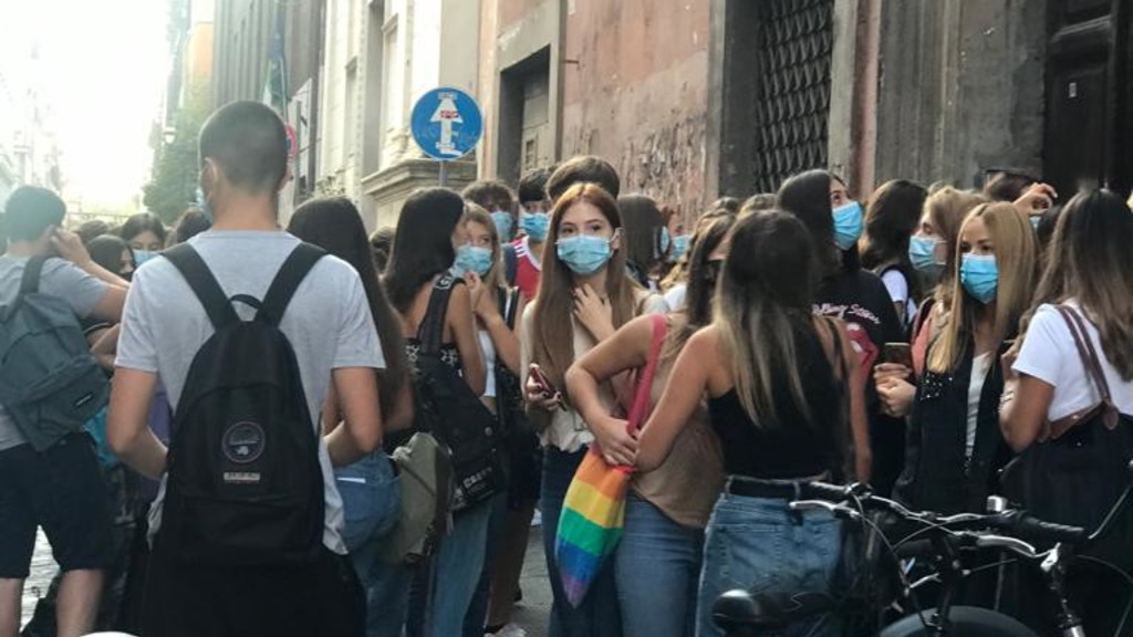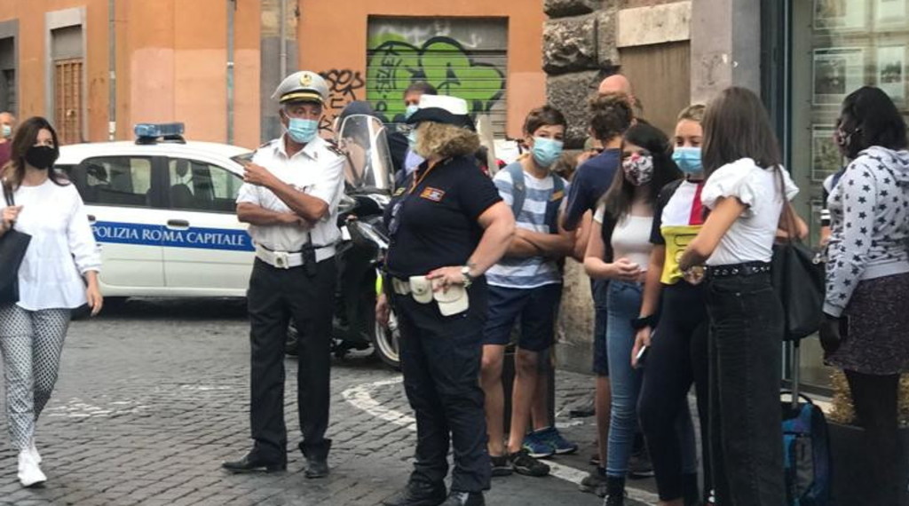 Primo giorno di scuola al Virgilio: assembramenti all'ingresso degli studenti. Il primo giorno di scuola è arrivato ma sembra che nella scuola media e liceo di via Giulia ci sia ancora più di qualcosa da mettere a posto. Basta guardare le foto per rendersi conto che gli studenti sono uno vicino all'altro, senza rispettare la distanza di un metro. E pensare che tutto avviene sotto gli occhi dei vigili urbani. Alla faccia delle regole della ministra Azzolina.