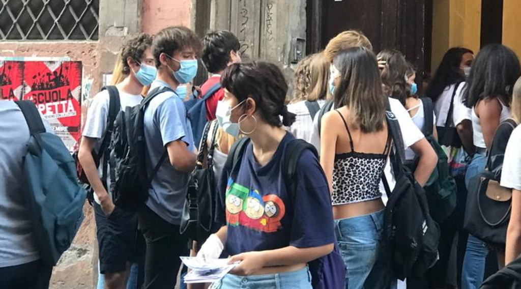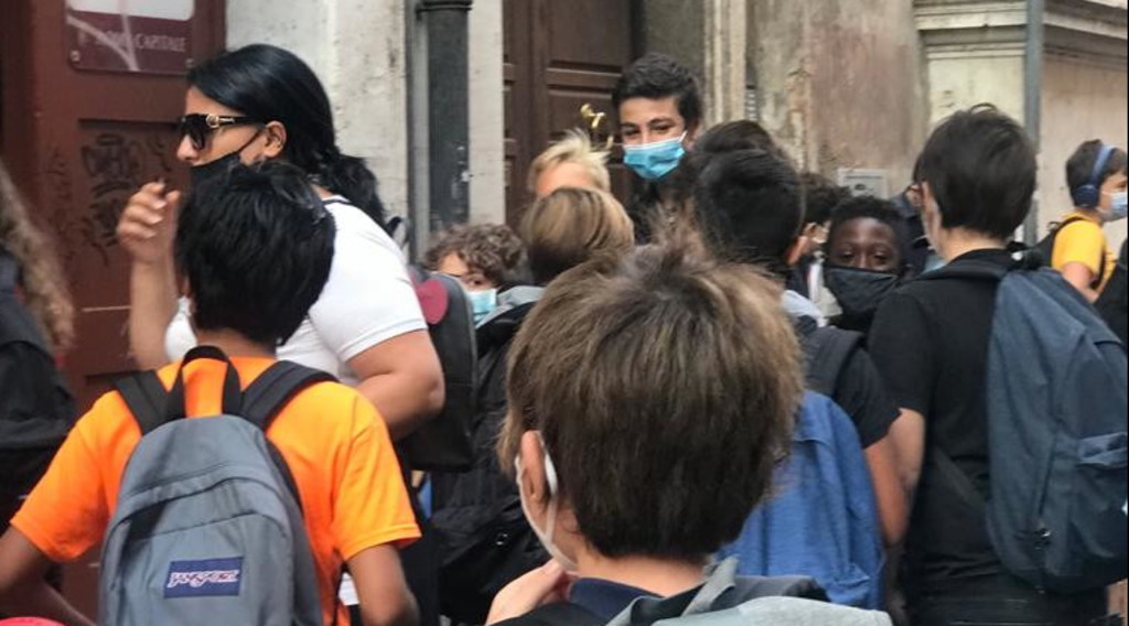 Assembramenti all'entrata di scuola. Alla faccia delle regole della Azzolina