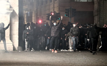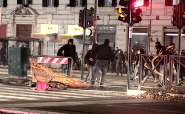 Un'altra notte d'inferno a Roma. Sono 12 i fermati per gli scontri tra manifestanti e forze dell’ordine durante la protesta di Roma a Piazza del Popolo, dove le frange estremiste hanno scatenato una guerriglia urbana con cassonetti rovesciati e lancio di petardi.