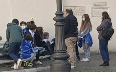 Il Covid sta cambiando tutte le nostre abitudini di vita e lavoro. E coinvolgono anche la scuola e gli studenti. Così, passeggiando per le strade di Roma, può capitare di vedere anche studenti che fanno lezione seduti per terra.