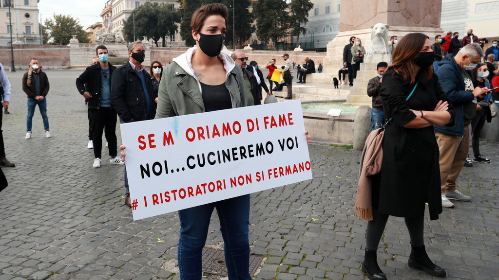 Sono sul piede di guerra i ristoratori che oggi si sono ritrovati a piazza del Popolo, nel cuore di Roma, per protestare contro i Dpcm del govermo. La manifestazione è stata organizzata da Italian Hospitality Network - IHN, associazione nata durante il lockdown per portare avanti le istanze di oltre 400 realtà tra enoteche, bar, ristoranti e mescite. In piazza manifestanti anche da Asti, Milano, Modena, Pescara, Napoli, Lecce. "Aiuti sono stati promessi, ma come già successo in passato, oggi non sembrano sufficienti o accessibili a tutti" spiegano gli organizzatori. "Se muoriamo di fame noi cucineremo voi", "Se mi chiudi mi uccidi" alcuni degli slogan presenti sugli striscioni dei manifestanti.