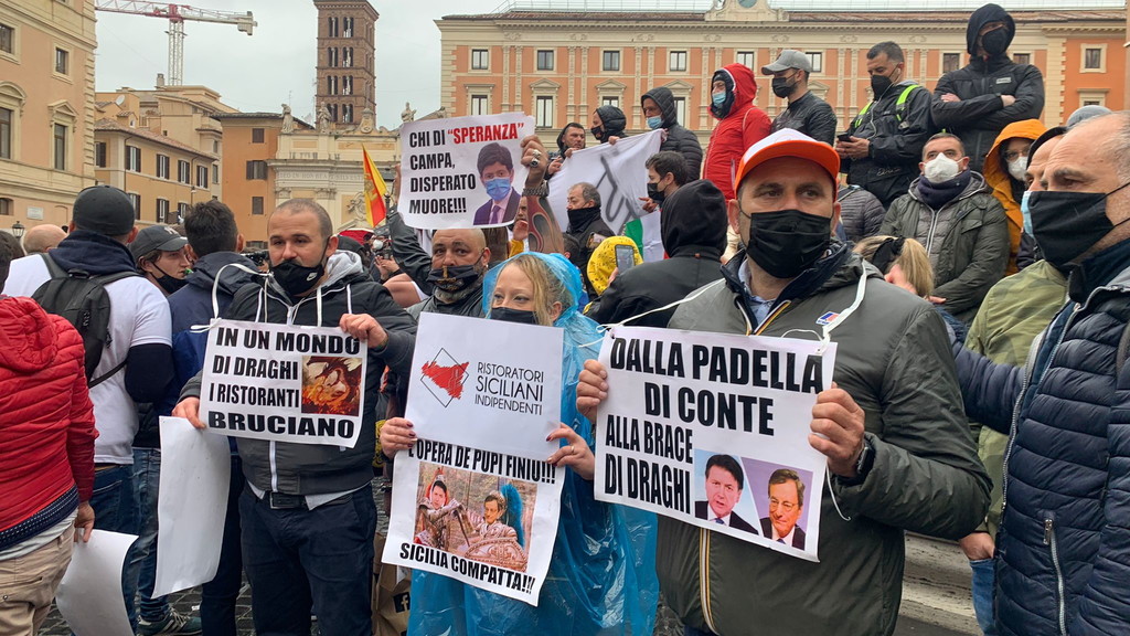 #IoApro La protesta dei ristoratori a Roma, fumogeni e Inno di Mameli VIDEO
