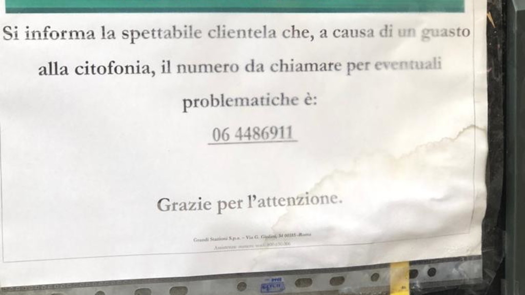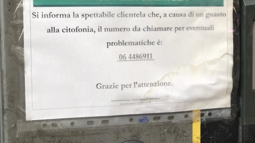 La Stazione Termini di Roma è un disastro senza fine dal punto di vista del degrado e soprattutto sembra che il Covid non esista da anni. Lo stato di abbandono delle strutture adibite ad erogare il gel igienizzante è totale e non c’è la minima traccia di un prodotto che proprio in un logo affollato e a rischio come una stazione ferroviaria sarebbe utile. Per non parlare dell'assenza dei guanti dal distributore apposito. “Avviso alla clientela: Si informa la spettabile clientela che, a causa di un guasto alla citofonia, il numero da chiamare per eventuali problematiche è…" il messaggio affisso in un altro punto della stazione, segnale che anche i citofoni sono guasti e i viaggiatori che ne avrebbero bisogno restano con le mani in mano. Eppure c’è una società - Ferrovie Real - che dovrebbe pensarci.