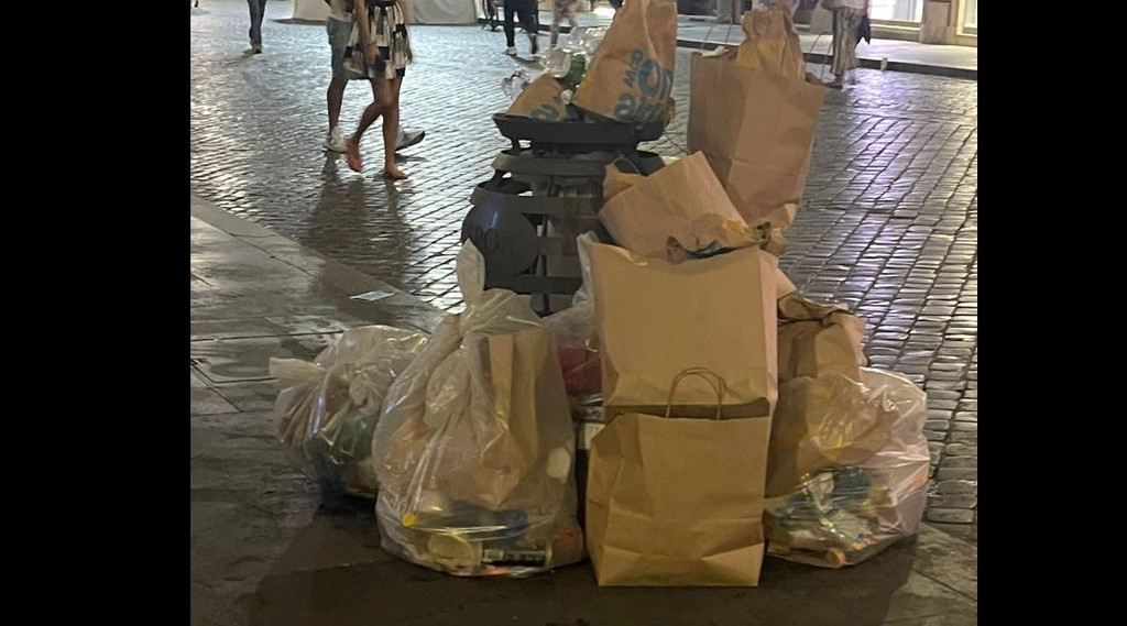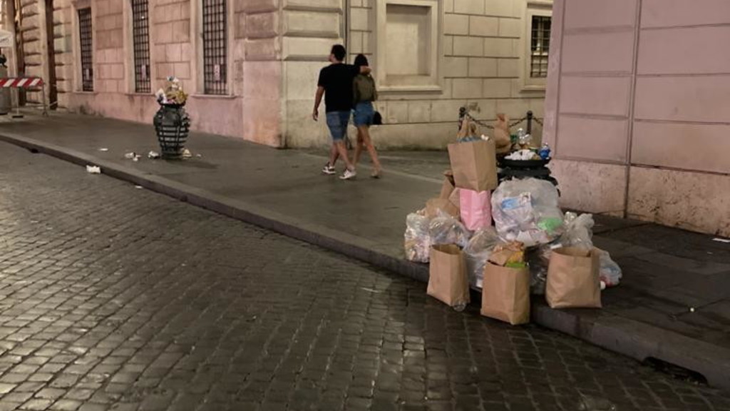 Ecco il biglietto da visita che Roma offre ai turisti. Siamo in quello che dovrebbe essere il salotto della Capitale, Piazza di Spagna, ridotta a una discarica. Alcuni cassonetti sono stracolmi e i rifiuti finiscono in terra, altri sono circondati dai sacchi di immondizia che nessuno viene a ritirare.