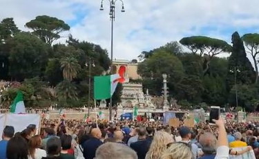 Scontri con le forze dell'ordine in piazza del Popolo alla manifestazione organizzata dai "no green pass". Si stima stiano partecipando circa 10mila persone. I mezzi della polizia sono stati assaltati dai manifestanti. Sollevate in aria dai no-vax delle bambole infilzate con le siringhe.
